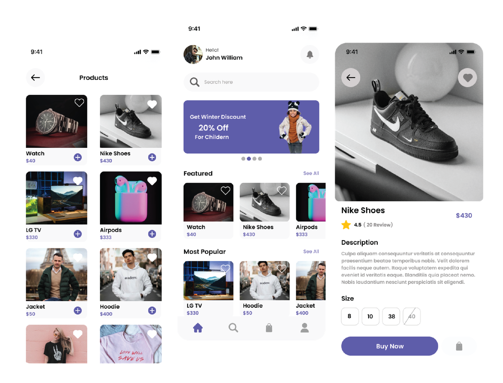 Our platform is designed with modern, clean, and conversion-focused UI components that deliver a smooth and engaging shopping experience across Website, Android, and iOS apps.